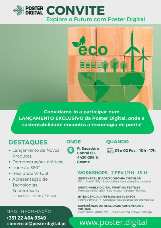 Convidamo-lo a participar no nosso evento Open House, nos próximos dias 1 e 2 de Fevereiro! Venha explorar o futuro com a Poster Digital, descubra os nossos produtos inovadores apresentação oficial dos novos produtos e assista à partilha de conhecimento sobre inovação sustentável.
